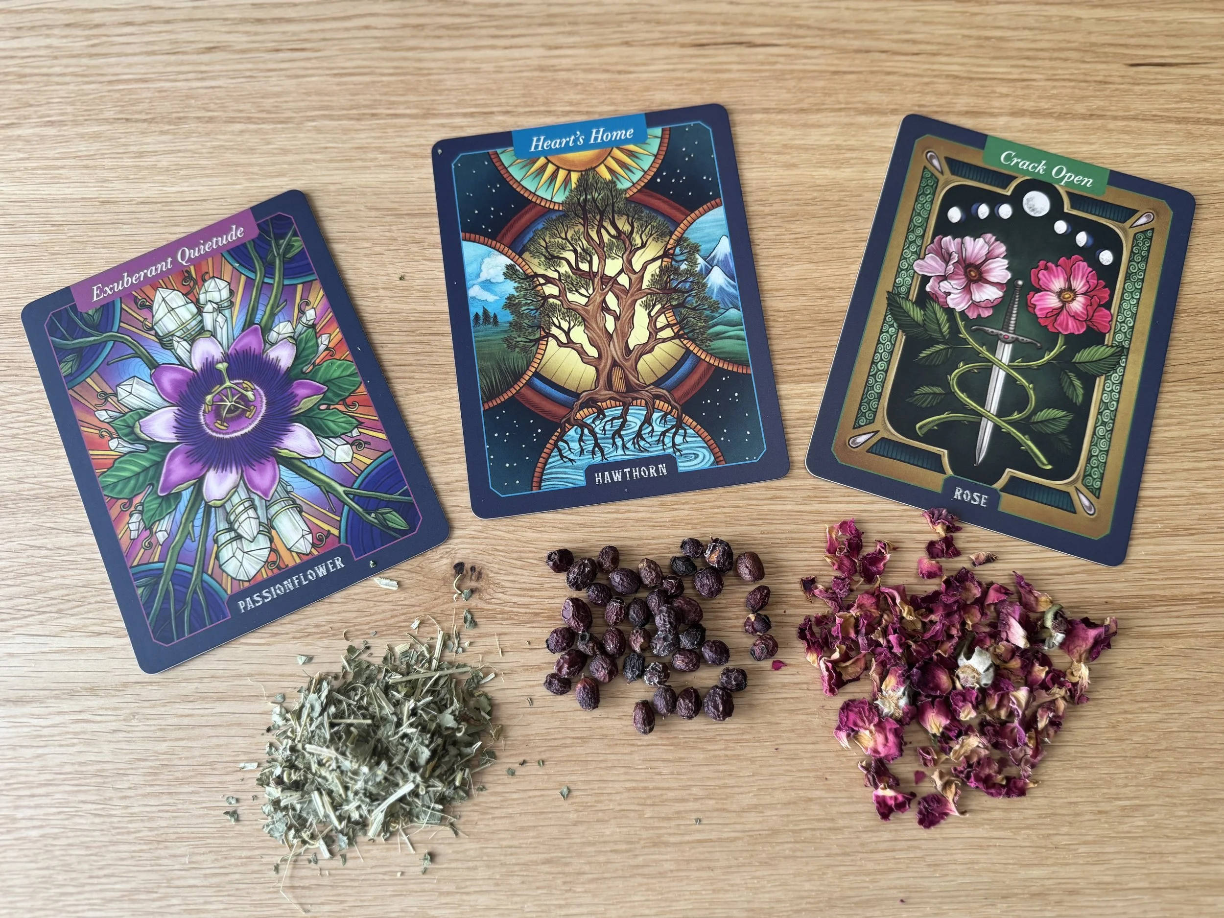 The Herbal Oracle is a one-hour intuitive experience guided by plant wisdom, oracle cards, and ritual tea.